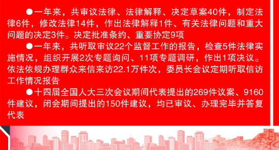 过去一年,全国人大常委会加强立法工作,以高质量立法服务和保障改革发展。