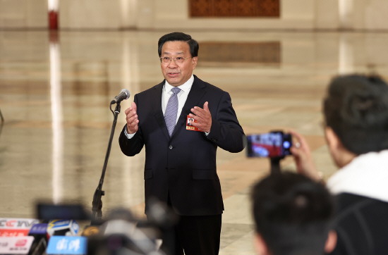 3月9日,十四届全国人大四次会议第二场“部长通道”集中采访活动在北京人民大会堂举行。图为农业农村部部长韩俊在回答记者提问。 本报记者 徐伟伦 摄