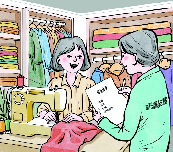 北京市丰台区的陈女士曾在服装厂做流水线车工,每天不仅工作辛苦,还有严格的上下班考勤,后来工厂搬迁到外地,她不愿背井离乡,便在家附近的小区一楼租了一间空房,于去年三月开了一家依靠老顾客介绍的手工改衣店。开店后,社区法律服务志愿者为她定制相关服务协议,写明项目、工期、价格、返修责任,避免了可能发生的纠纷。在社区做了登记备案后,居民更信任,改衣店的客源也比之前多了一倍。