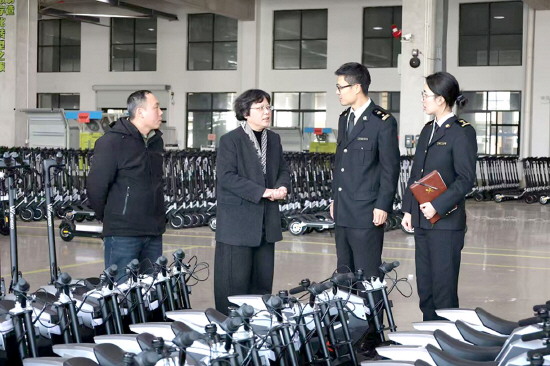 日前,由杭州海关提出的“电动滑板车”增列世界海关组织2028年版《商品名称及编码协调制度(修订)》子目议题(HS编码:8711.62)被成功纳入。电动滑板车将有专属的“身份证”,不仅能解决该商品的归类争议问题,也为我国相关出口企业拓展国际市场铺设了坚实道路。图为海关关员在电动滑板车企业开展政策宣讲。 本报通讯员 李晓慧 摄