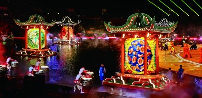 开幕式现场的艺术装置《湾区四时·花灯戏韵》