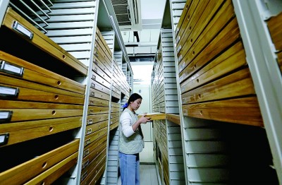 植物保护学院昆虫学系研究生正在检视馆藏标本。