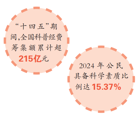 ??科技创新、科学普及是实现创新发展的两翼。“十四五”期间我国科普事业实现历史性跨越——全国科普经费筹集额累计超215亿元,全国科技馆和科学技术类博物馆共计1779个,公民具备科学素质比例从2020年的10.56%跃升至2024年的15.37%。一系列数据背后,是科普活动覆盖城乡、科技资源下沉基层的生动实践,是全民科学素质提升服务国家创新驱动战略的深刻体现。?