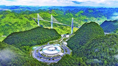 ??坐落于贵州黔南、横跨槽渡河峡谷两岸的平塘大桥,拥有世界最高的钢筋混凝土桥塔,被称为“天空之桥”。