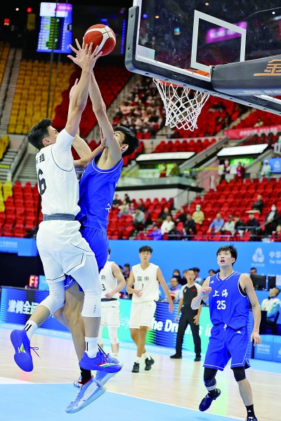 11月19日,十五运会篮球(男子22岁以下组)半决赛在香港体育馆进行。最终广东队战胜上海队,进入决赛。本报记者 杨震摄/光明图片