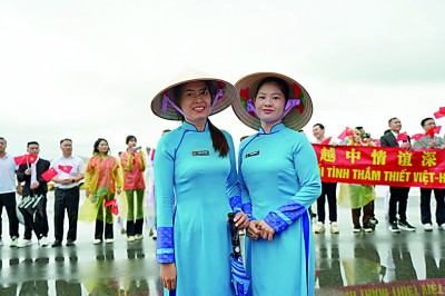 作者: 《光明日报》( 2025年11月22日 04版) 当地华侨华人冒雨迎接中国海军编队。 当地民众身着越南传统服饰到码头迎接中国海军编队。