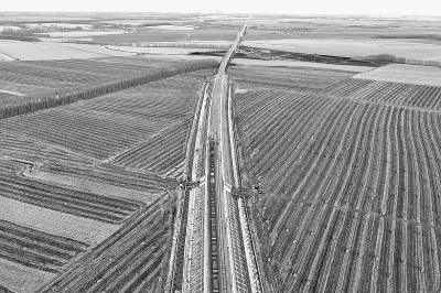 ??11月25日,在黑龙江省绥化市庆安县永华村哈伊高铁哈铁段铺轨现场,施工方中铁二局的工人将最后一对钢轨螺栓拧紧,标志着我国“十四五”重点工程哈伊高铁全线铺轨贯通,为后续联调联试奠定基础。哈伊高铁是我国“八纵八横”高铁网京哈—京港澳通道的重要延伸,也是在建纬度最高、全年温差最大,且首条穿越多年岛状冻土区的高速铁路。新华社记者 王松摄