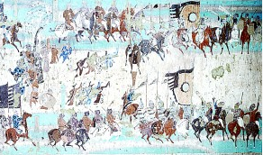 莫高窟第156窟河西节度使张议潮统军出行图(局部) 资料图片