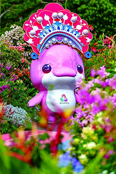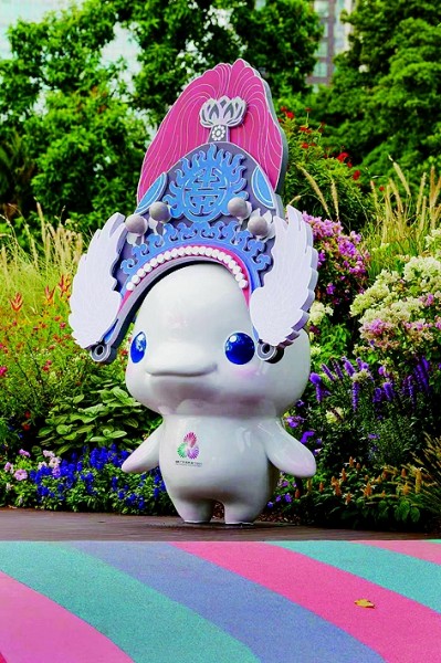 11月5日,头戴粤剧冠饰的全运会主题吉祥物亮相第32届广州园林博览会(秋季场)。光明图片/视觉中国