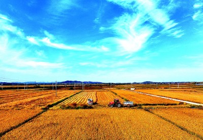 ??进入初冬,城子坦街道大卢社区的碧流河河口湿地旁,张文龙家庭农场的千亩水稻收割完毕后进入集中加工期。饱满的稻粒被铲车源源不断地送入脱米机中,变成一颗颗洁白晶莹的稻米。90后“新农人”张文龙推行有机绿色种植,实现从引种、耕种、加工到包装的全链条运作。通过订单与代管模式,他带动周边3000余亩稻田共同发展。