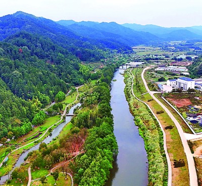 宜黄县棠阴镇旁的宜水河景观焕然一新。本报记者 郭俊锋摄