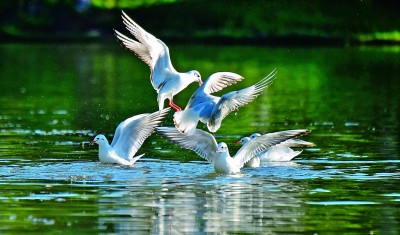 ??11月28日,云南省红河哈尼族彝族自治州弥勒市湖泉生态园,一群红嘴鸥在水面觅食、嬉戏,吸引游人驻足观看。
