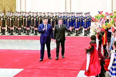 ??习近平强调,当今世界很不太平,热点问题多点爆发、复杂难解。中法同为联合国创始成员国和安理会常任理事国,应当践行真正的多边主义,维护以联合国为核心的国际体系和以国际法为基础的国际秩序,就政治解决争端、促进世界和平稳定加强沟通和协作,推动改革完善全球治理。当前,世界存在南北发展不平衡、发展中国家在国际金融机构中代表性不足等很多不平衡问题,各国应当共担责任、协调行动,携手推动全球经济治理更加公平、公正、合理。中欧50年来的交往合作互利共赢、成就彼此。各国产供链深度互嵌,开放合作带来机遇发展,“脱钩断链”意味着自我封闭。保护主义不能解决世界产业结构调整的问题,反而将恶化国际贸易环境。中欧双方应该坚持伙伴关系定位,秉持开放态度推进合作,确保中欧关系沿着独立自主、合作共赢的正确轨道发展。