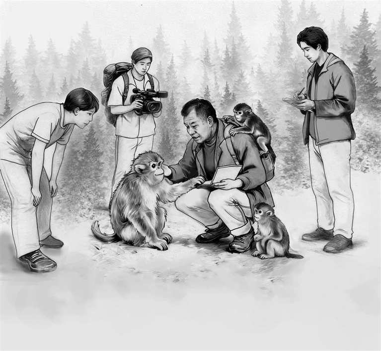 20世纪90年代末,还在读本科的齐晓光就跟着老师李保国走进秦岭,开始年复一年地追踪猴群。“李老师指导我们为金丝猴戴上GPS项圈,利用卫星遥感和社会网络分析的方法,在风雪中记录它们每一个亲昵理毛或抱团取暖的瞬间,最终首次揭示出金丝猴家庭、分队、社群层层嵌套的重层社会结构。”如今已成为西北大学生命科学学院教授的齐晓光回忆。