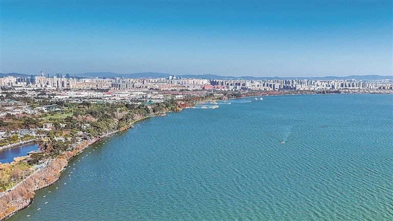 记者近日从昆明市滇池管理局了解到,2018年至今,滇池全湖水质已连续8年保持Ⅳ类并持续向好。2025年,滇池水质进一步改善,全湖水质稳定为Ⅳ类,达到1993年国家首次对滇池水质开展系统监测以来最好水平。图为1月22日拍摄的滇池景色。新华社记者 彭奕凯摄