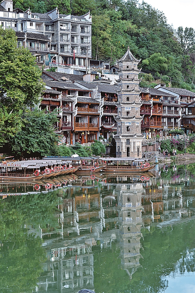 古城的真实,是建筑的真实、环境的真实、材料技术的真实,更是生活方式的真实。古城是一个鲜活的文化生态,兼具物质和精神属性,形成人们对古城的记忆。这种记忆,在作家笔下表达得最为真切生动:老舍笔下自然安闲、具有乡土背景的北京,张爱玲笔下摩登与混杂的上海,茅盾笔下的灵秀富庶、文风昌盛的乌镇……当然,还有沈从文笔下古老神秘、民风淳朴的湘西凤凰。这座被新西兰著名作家路易·艾黎誉为“中国最美的小城”的古城,名家辈出,走出了熊希龄、沈从文、黄永玉等名人。沈从文年少时便离开凤凰外出闯荡,却成为这座古城最亮眼的一张“文化名片”。对他而言,故乡就是一个曾经逃离,而又终身牵挂的地方。“凤凰的一切景象全仿佛是诗,说不出的和谐,说不尽的美。”