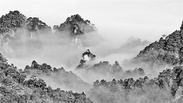 1月23日,湖南省宜章县莽山国家森林公园将军寨景区,云海、怪石、奇峰、雾凇交相辉映,美不胜收。刘东华摄/光明图片