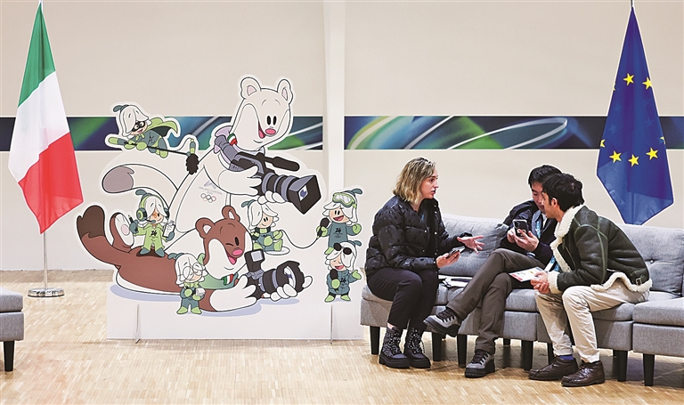2026年米兰-科尔蒂纳冬奥会主媒体中心日前在米兰正式投入运营。这里将成为全球约7500名媒体工作者的“大本营”,为覆盖本届冬奥会的新闻报道和转播提供核心支持。图为1月28日,人们在主媒体中心交流。新华社发