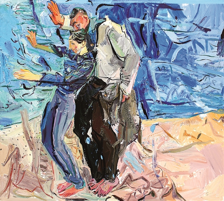 书写性笔触的独立审美价值,是写意油画的主动追求。油画笔触不再仅仅是塑造体面的技术手段,而是如同中国书法中的用笔,讲求起承转合、轻重缓急、干湿浓淡,每一笔都承载着心绪的节奏与力度,是“心迹”的直接外化。如戴士和的《花儿与少年》(图⑤)便体现了这种书写性追求,画面中多变而劲健的笔触,既塑造了物象的形态,更传达出艺术家面对生活场景时的感怀与逸兴,笔触本身具有了独立的审美价值。