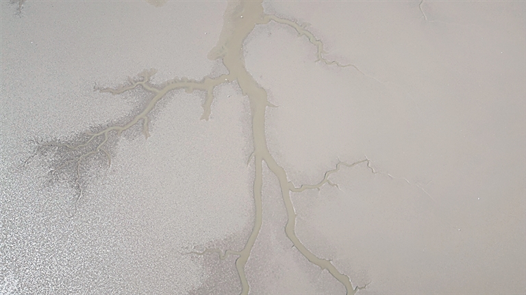 冬日的黄河口湿地,大河息壤,芦海飘荡。海风和潮水在广袤的滩涂上交替“作画”,勾勒出一株株潮沟交错的“生命之树”,绘就“鸟浪”翻飞的生命奇观。