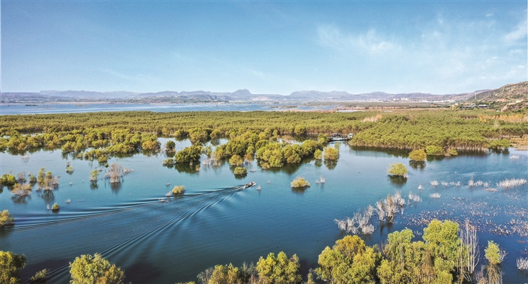 这份诗意的栖居,源自淅川人坚韧的守护。曾经丹江口水库库岸线的生态脆弱,如今则被超过50万亩的森林温柔环抱。人们以滴水穿石的恒心,梳理水系,复苏湿地,让1.8万余亩湿地重焕生机,20余公里水系畅通相连,40余万株杞柳、菖蒲在水岸旁织就翠色的流苏。这些努力,都化为丹江口水库稳定保持在Ⅱ类及以上的清澈水质。