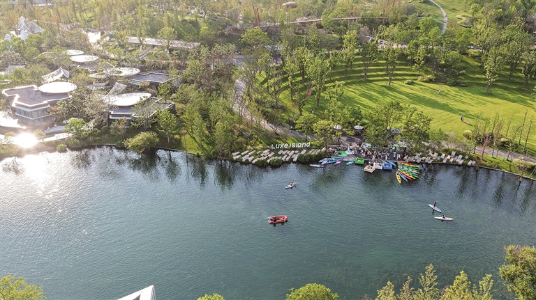 通过补齐基础设施短板、重塑生态与公共空间,如今,蜿蜒的水线上,皮划艇划破粼粼波光,荡漾着水面下的葱茏绿意。不远处的动物农场,孩童的欢笑与鹿鸣声交织,草坪上市民在扎帐篷露营……2000亩公园水系与人的活动深度交融,勾勒出一幅“城水共生、主客共享”的生动画卷。