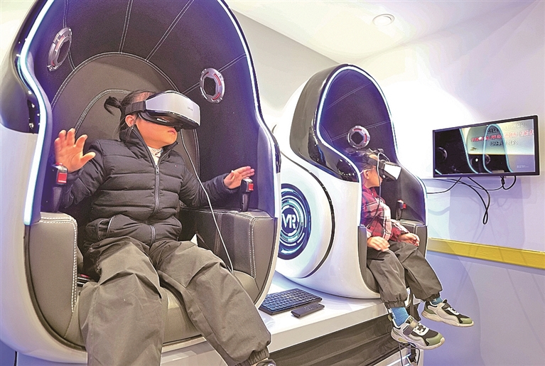 2月2日,2026年上海市小学生爱心寒托班正式开班,迎来超1万名小学生报到。图为在普陀区长征镇办班点,寒托班的小学生参与VR安全模拟,了解地震知识。