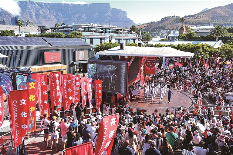 2月1日,距离中国万里之遥、被称为“海角之城”的南非立法首都开普敦先一步迎来“春”意。当天,一场别开生面的中国年庆祝活动在维多利亚港区举行。人群中,既有身着盛装的华侨华人,也有携家带口的南非市民。不同肤色、不同语言的人们相聚,共同庆祝象征着团圆与希望的中国春节。图为人们在观看表演。