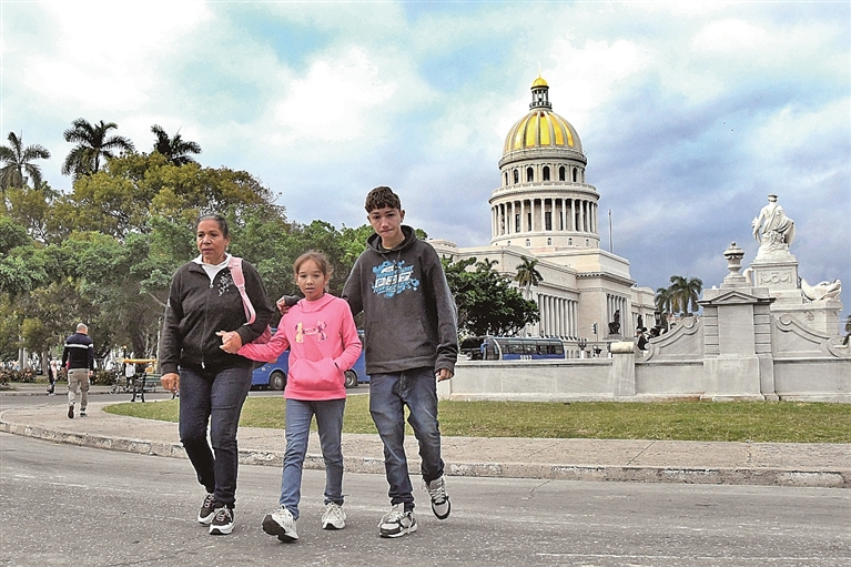 古巴气象研究所2月3日通报,古巴西部马坦萨斯省一处气象站当日7时记录到0摄氏度气温。这是古巴这个热带岛国有记录以来气温首次达到冰点,打破了1996年2月0.6摄氏度的全国最低气温纪录。图为2月3日,在古巴首都哈瓦那,当地民众穿着长袖外套走在街头。
