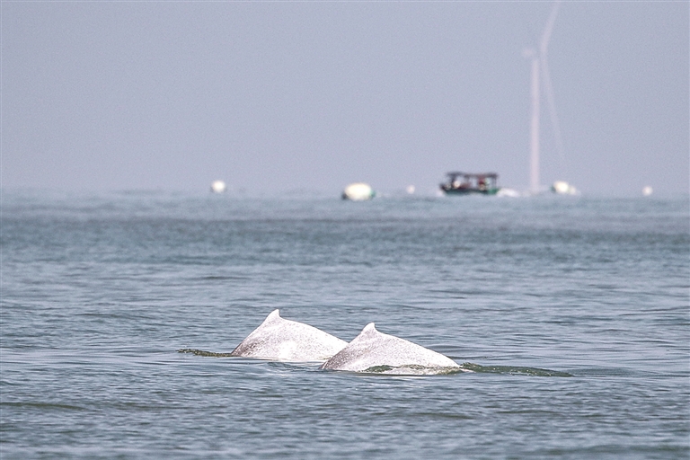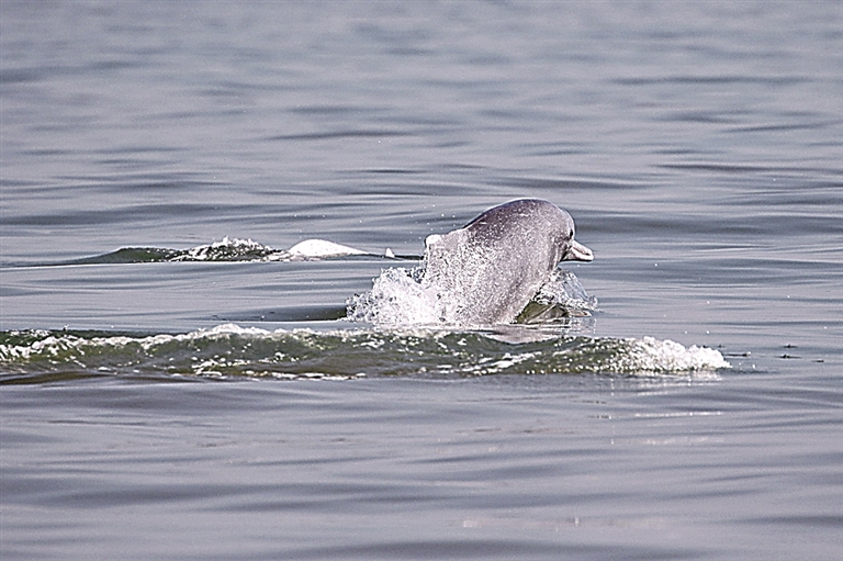 近日,中国科学院深海科学与工程研究所海洋哺乳动物研究团队在海南岛西南海域开展中华白海豚专项监测调查时,观测到一群规模较大的中华白海豚,现场估算数量约为30至50头。据悉,中华白海豚为国家一级重点保护野生动物,被视为反映近岸生态环境健康状况的重要指示物种。图为2月4日在海南岛西南海域拍摄的中华白海豚。新华社发