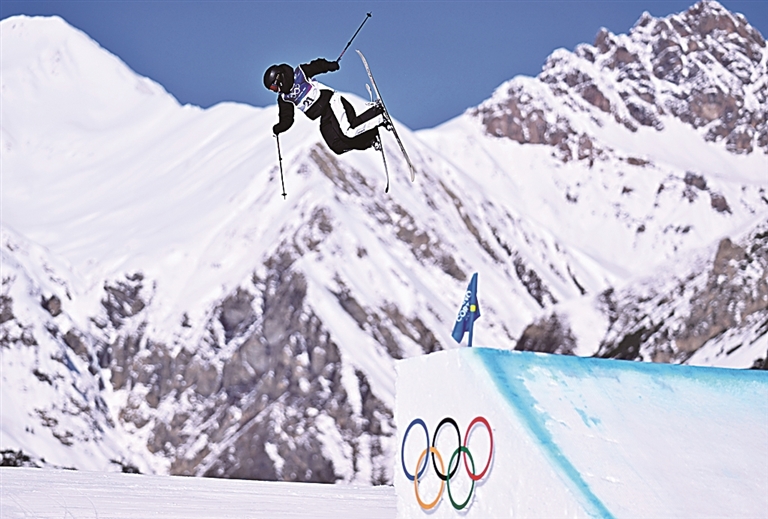 当地时间2月7日,在意大利利维尼奥举行的女子坡面障碍技巧资格赛中,中国选手刘梦婷迎来本届赛事首秀。新华社发