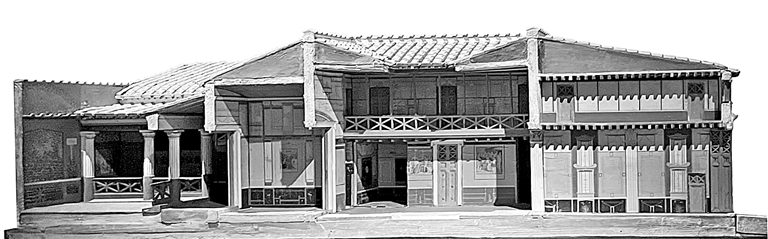 虽然在艺术史研究中,人们对这一划分法仍存质疑,但它对我们理解庞贝壁画的装饰风格依然有一定参考价值。除了对壁画内容及风格的关注之外,我们也可从中发现庞贝人对图像的观看视点、墙体形制与空间适配度等方面的艺术理解。