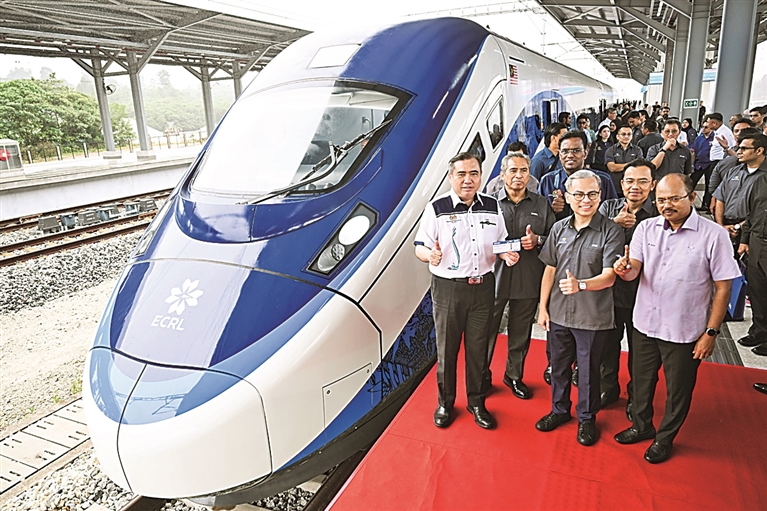 2月11日,中国交通建设集团有限公司承建的马来西亚东海岸铁路(马东铁)项目首批动车组在马来西亚彭亨州州府车站苏丹阿末沙城站正式亮相。马东铁项目全长665公里,是中马两国共建“一带一路”合作的旗舰项目。