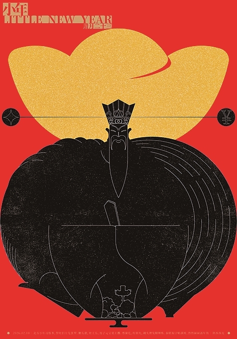 北方小年是春节的序曲,这一天,人们以“祭灶”习俗为核心,家家洒扫除尘,剪窗花,备年货,蒸花馍,在忙碌与笑语中迎接团圆年。《小年》设计以灶王爷形象为核心,通过糖瓜外轮廓概括其身体,融入水果等贡品元素,体现祭灶习俗,将马的造型结合糖瓜纹理与鬃毛细节,以示灶王爷收到贡品,呼应“上天言好事,下界保平安”的吉祥寓意。