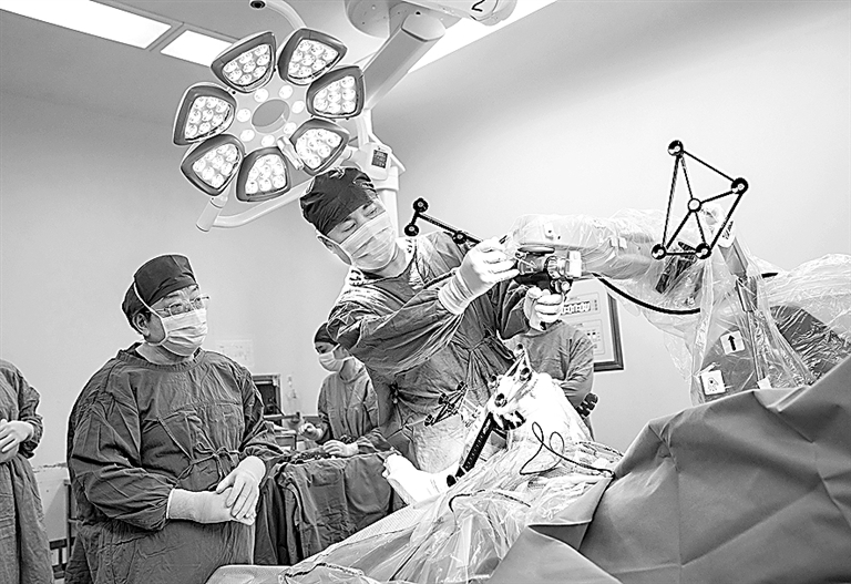 跨越四千多公里,这场两地协同支持下的机器人辅助膝关节置换手术顺利完成。“我们用到的这款机器人,通过高清三维视野和灵活的机械臂,做手术的精确度能大幅提升。”李慧武表示,该机器人可以将置换关节角度误差降至0.5度,出血量减少30%以上,有效减少患者创伤,加快恢复时间。