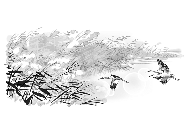 几只小鸟从远天飞来,落在湿地上,争先恐后似在寻找着什么;不远处,湿地的低洼处,大片大片的芦苇,让风也无可奈何地收敛起脚步,放缓了呼吸……