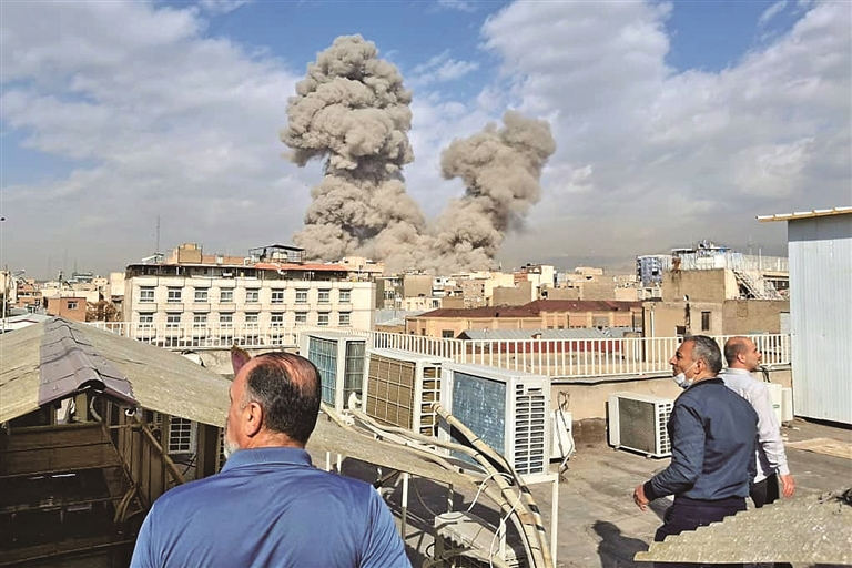 2月28日,以色列和美国突然对伊朗发动军事打击。此外,据中东国家和地区媒体报道,阿联酋、科威特、卡塔尔、黎巴嫩、沙特等国当天也响起爆炸声。伊朗媒体报道说,伊朗正在打击美国在中东的军事基地。图为在伊朗德黑兰拍摄的爆炸引发的浓烟。