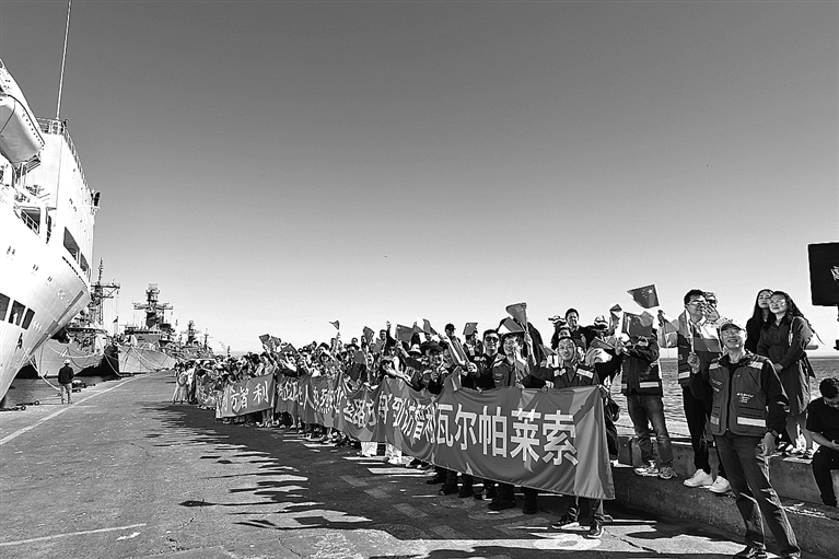 3月1日,执行“和谐使命-2025”任务的中国海军“丝路方舟”号医院船抵达智利瓦尔帕莱索港。