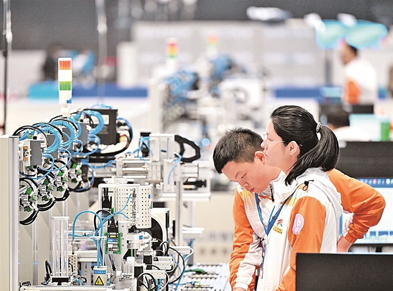 这些年来,我们探索形成了四种合作模式:一是现代学徒制、订单班等精准育人模式,与龙头企业共建校内培训基地;二是以“实战项目”重构教学场景,在校内创建13个专业实体,以真实场景、真实生产任务驱动教学,以真实产品、真实交付让学生在校期间就接触行业前沿;三是推动企业骨干与学校教师双向流动,建立长效的双向兼职、双重身份互融机制;四是以特色专业学院为载体,与行业领军企业共建7个专业学院,累计培养两万余名技术人才,每年为合作企业培训在职员工1.5万人次,从在校生到在岗工,产教融合贯穿了技能人才成长的全过程。如今,我们学校超过80%的毕业生进入合作企业体系,学生尚未毕业就被企业“抢订一空”。