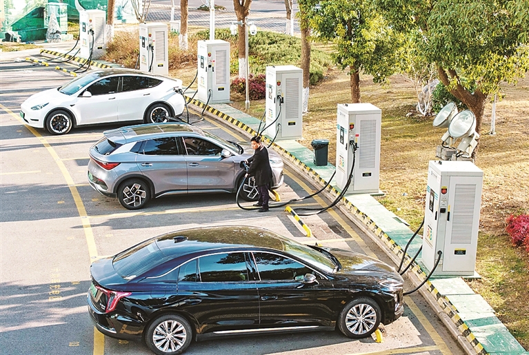 数据显示,我国新能源汽车产销量连续11年位居全球第一。走在城市街头,悬挂新能源车牌的汽车越来越多,街边、充电站的充电桩一排接一排。