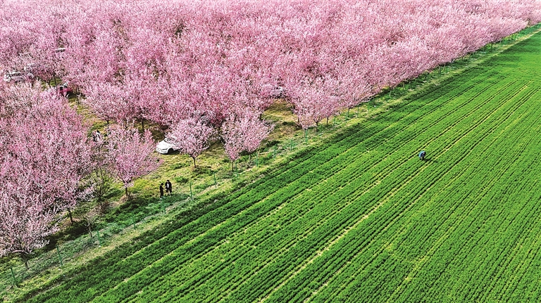 近日,陕西省西安市鄠邑区甘河街道丁村梅花种植园内梅花盛放,吸引众多游人前来游玩拍照。新华社记者 邹竞一摄