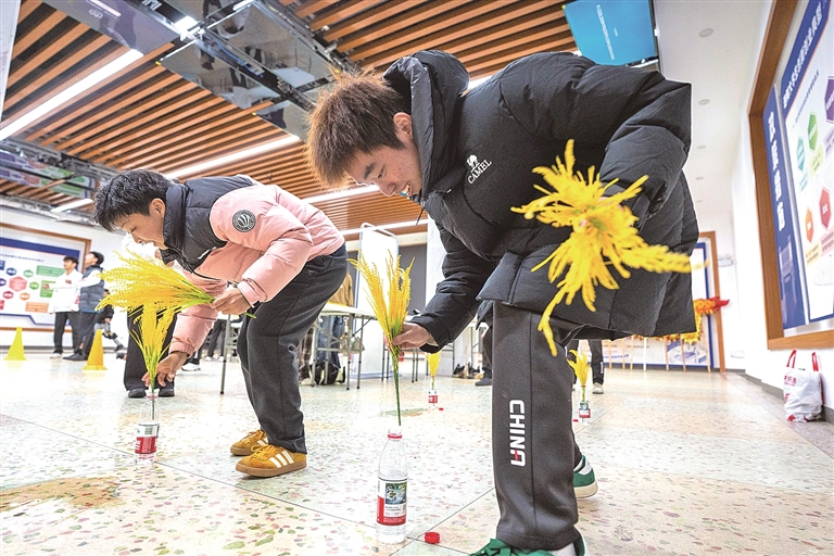 在农历二月初二“龙抬头”即将来临之际,湖南农业大学开展“二月二”龙抬头农耕体育文化活动,组织学生在校园内开展农趣运动游戏,让师生近距离感受传统文化的魅力和乐趣。图为3月19日,学生在参加农趣运动游戏——抢种抢收。