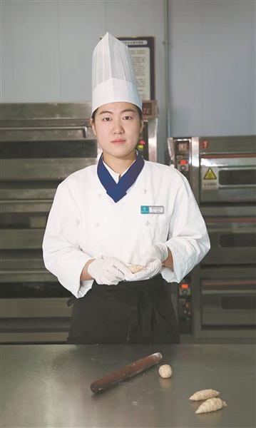 在北京勤尚餐饮管理有限公司的后厨,尹晴正专注地为鲍鱼酥修边塑形。指尖翻飞间,面团被她赋予精致轮廓。这份娴熟与从容,是她用5年时光从行业新手到资深面点厨师的沉淀与坚守。