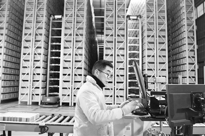 江西省瑞金市是著名的革命老区。近年来,瑞金市重点打造“精工智造、文创玩具、纺织服装”3个制造业集群,推动制造业重点产业链条式、集群化发展。据统计,2025年瑞金市新增规上工业企业21家,总数达145家,规上工业增加值同比增长12.8%。图为在江西瑞金漫格科技有限公司库房内,工作人员操作智能机器人抓取积木产品进行打包。