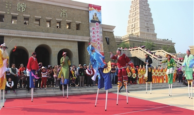 高跷,是舞蹈者在脚上绑着长木跷表演的活动,由于演员踩跷比一般人高,便于远近观赏,所以称为高跷。高跷在我国已有悠久的历史,有关高跷最早的文字记录是出现在古文献《列子·说符篇》中。高跷在春秋时期已有较高的技艺,据考古学家在北魏时期墓碑上的“百戏图”中,发现“乔人”(当时对表演高跷艺人的称呼)的形象,足以证明高跷在当时已是一种技艺表演活动。