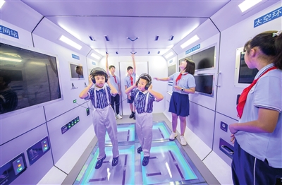 丰台外国语学校的孩子们“进驻”“天和号”模型空间站,作为全国首个落户到中小学的空间站科普实验室承担起开学第一课的任务。“天和号”模型空间站按照“天和号”等比例制作,核心舱长16.6米,最大直径4.2米,内部空间为50立方米,相当于一栋5层高的居民楼,内部又可以细分成节点舱、生活控制舱还有资源舱三个舱室,节点舱长2.8米,用来对接其他舱室和飞船,资源舱长约2.2米,主要用来存放生活物资。