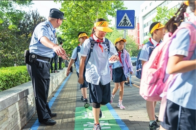 丰台交通支队组织警力在暑假期间对学校周边交通安全隐患进行了滚动排查治理,共计完善校门口防撞设施16处、网格线7处,新增标志25面;指导内部人车混行的学校完善隔离设施18处;积极会同交通、应急等部门,在开学前累计修复路面破损4处、积水凹陷2处。开学前后,交警们每天早晨六点半就全员到岗到位,对途经丰台五小门前道路的电动三四轮车提前进行分流和引导,最大限度保证学生交通安全。开学首日,丰台交通支队共设置护学岗位26处,出动警力67人次、警辅人员96人次。同时,会同区教委共发动教职员工1250余人、保安员500余人、家长和社会志愿者1500余人,在学生上下学时段,协助交管部门全面加强学校门前交通疏导。支队安监民警还在五小校门口设立了一个交通安全点,通过展示牌以及发放的宣传卡片进行交通安全宣传教育。