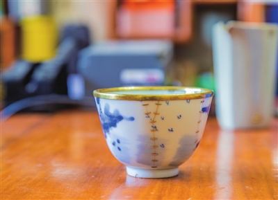 本报讯(记者 原梓峰 李娜)一只青花釉里红花草纹公道杯,杯口外侧飘下一片银色的荷叶,荷叶上錾刻了细细的纹路,还微微卷了边,杯口内侧缀着一支小小的莲蓬,甚至能看到细密的莲子孔……如果不问,你会以为这是工美大师特地在公道杯上做出的美化装饰,其实,这是锔瓷大师刘放为了修补杯口磕碰和杯身窑裂而做的锔瓷秀活。