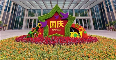丰台区城管委围绕丰台区重点街区、丽泽金融商务区、科技园区、方庄地区等区域,开展多元化、特色化节日景观布置,设置景观小品类立体化展示42处166组。据介绍,丰台区26个街镇广泛发动社会单位和公众参与节日氛围营造工作,社区及沿街商户悬挂国旗6192面,设置节日宣传栏112块。