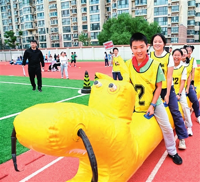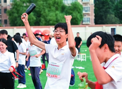 在教师趣味比赛中,老师们一个个精神抖擞,你追我赶、奋力拼搏,不仅展现了北京十一学校丰台中学教师们团结协作的精神风貌,更展现了教师们奋力笔耕之外的阳光与豪迈。